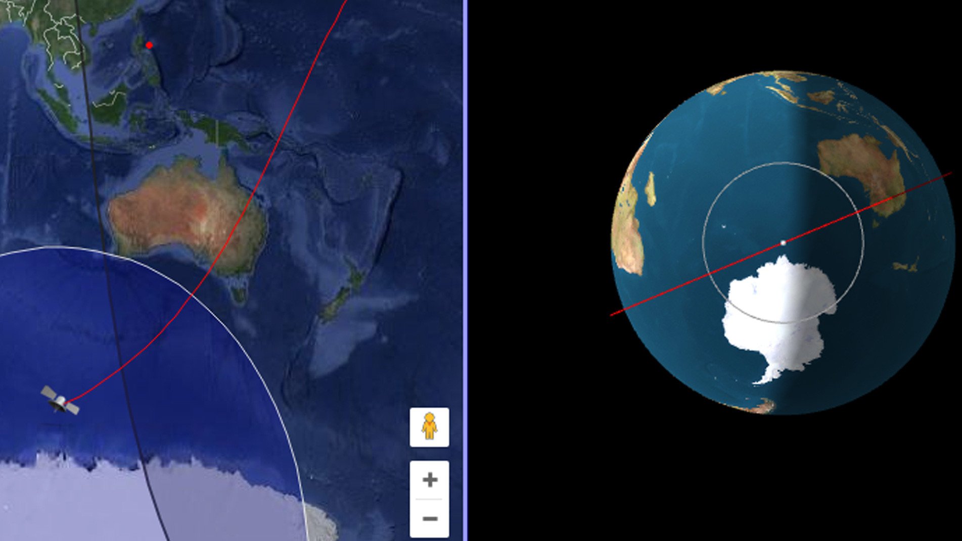 Según la proyección de su órbita, la trayectoria del satélite pasa sobre Canadá, EE.UU., Brasil, Indonesia y Japón entre otros.