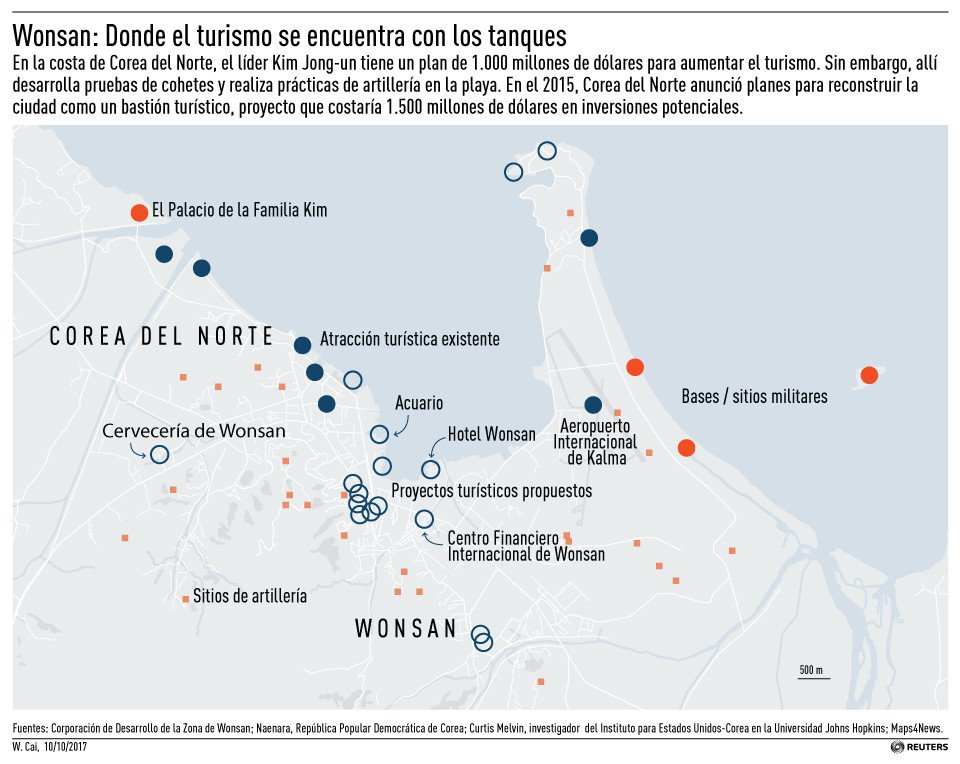 En 2015 Corea del Norte ya había anunciado su imponente plan de 1.500 millones de dólares para reformar la ciudad de Wonsan y convertirla en un bastión turístico de la península. Sin embargo, en sus playas suelen realizar pruebas bélicas con cohetes y desarrollan prácticas de artillería pesada, según informa Reuters.
