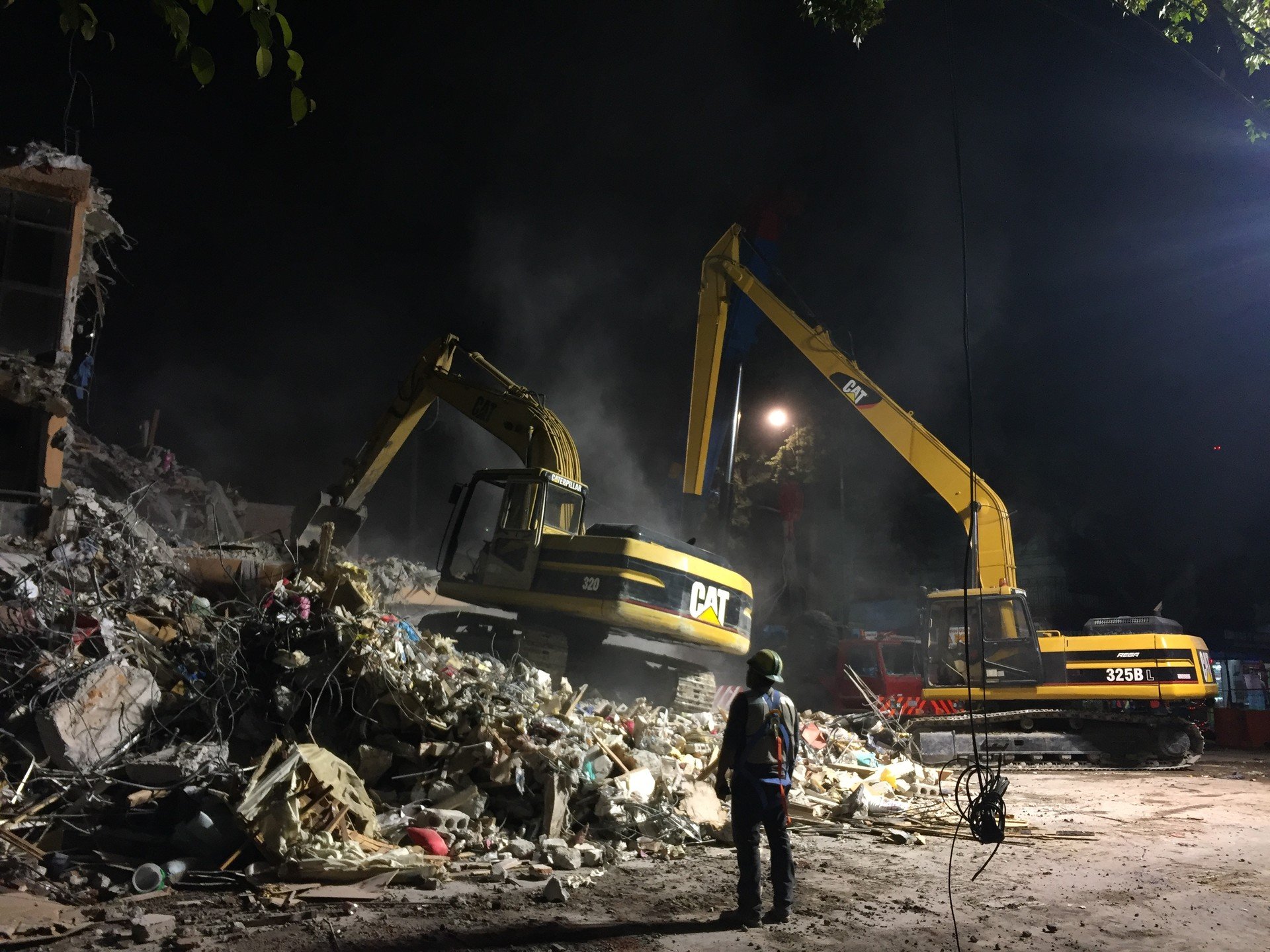A un costado de ese campamento urbano ubicado entre las calles Yacatas y Concepción Béistegui, en la delegación Benito Juárez, está Enrique Alcántara, de 64 años. Fuma un cigarro junto al policía que recibe la guardia nocturna para custodiar la zona hasta que terminen las labores de remoción de escombros.