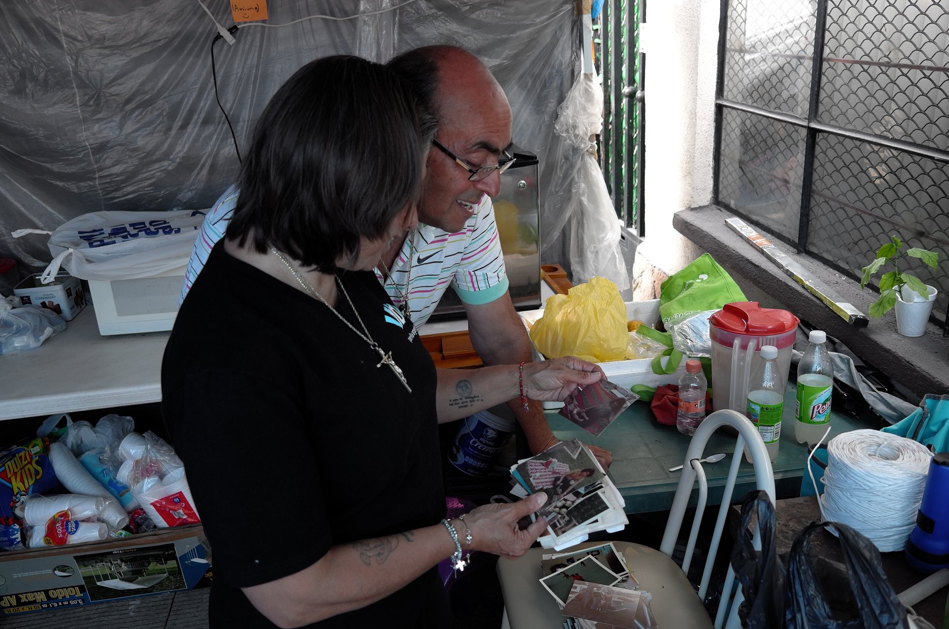 Una señora irrumpe en la carpa donde almuerzan José Luis Tavera y su esposa Donny Romero. En la mano trae un pequeño fajo de fotografías aún llenas de polvo que acaba de rescatar del amasijo de concreto y vigas apostado en la esquina.