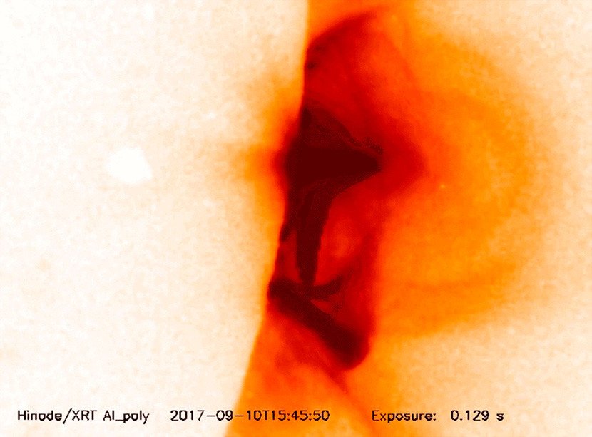 La sonda Hinode, operado en conjunto por la Agencia Japonesa de Exploración Aeroespacial y la NASA, registra imágenes de rayos X de la corona solar, permitiendo establecer la relación entre los cambios en el campo magnético del Sol y las fulguraciones ocurridas en su superficie.