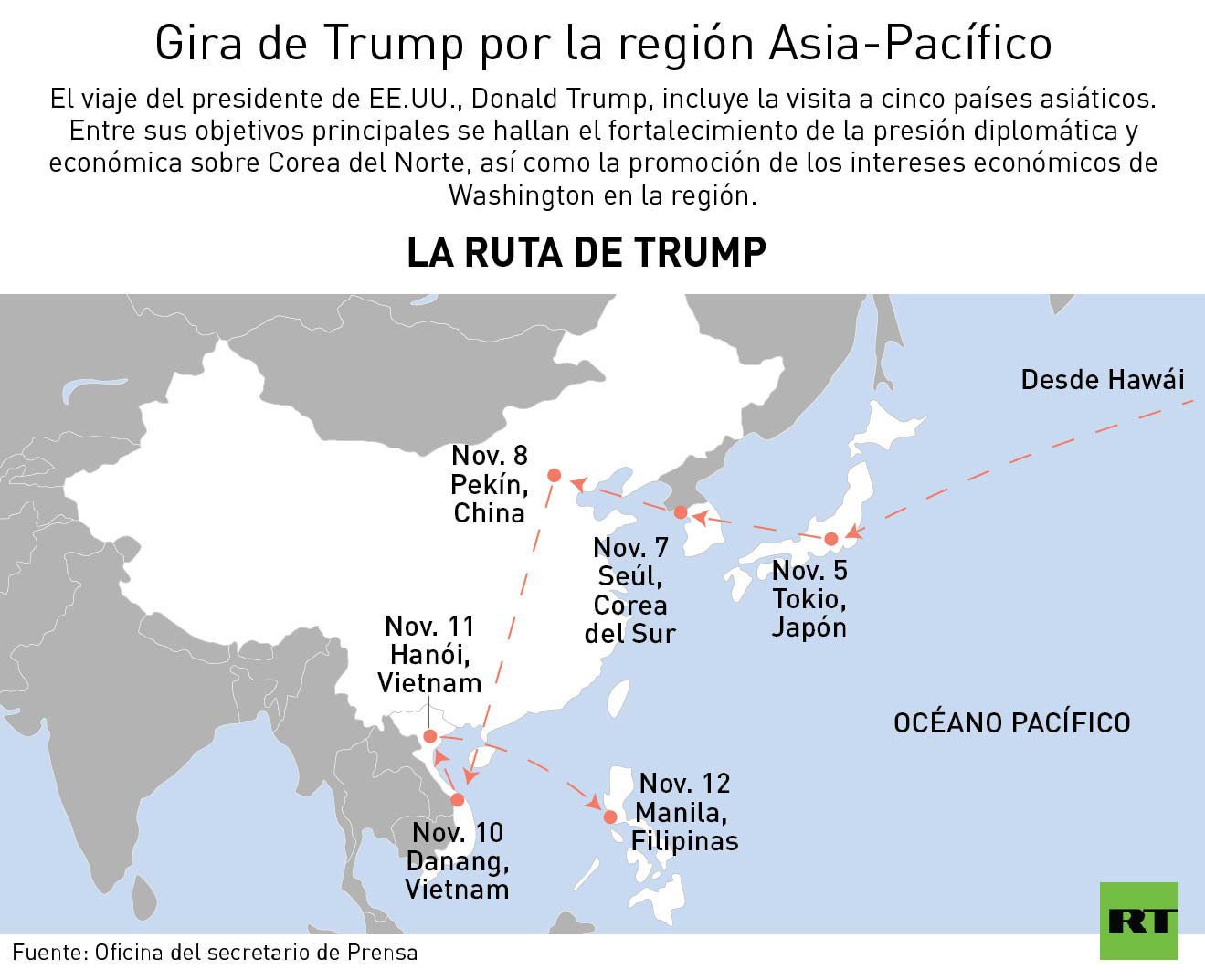 Respecto a la situación en torno a Corea del Norte, el presidente Trump pidió a toda la comunidad internacional, y a Rusia, en particular, ayuda para la resolución de la tensión en la península coreana.