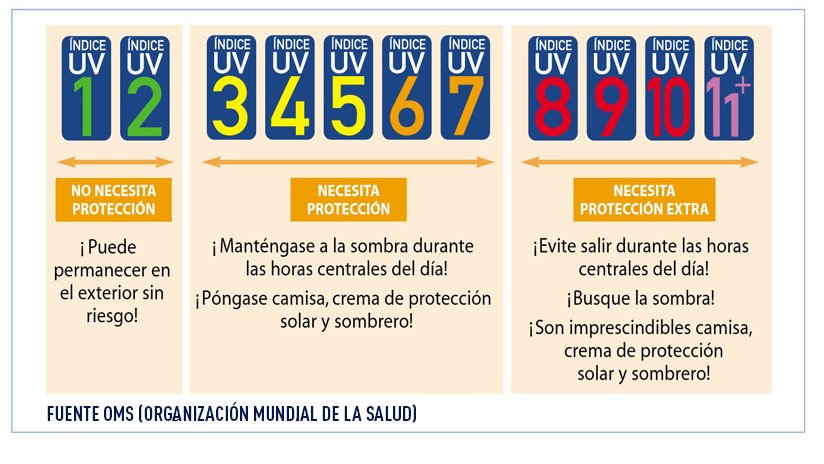 La medición de los Rayos UV se expresa en índices y así lo deja claro la Organización Mundial de la Salud (OMS) en su guía práctica: