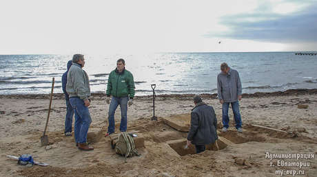 Un transeúnte que caminaba por una de las playas centrales de la ciudad se topó casualmente con el borde de una gran losa de piedra, se interesó por el hallazgo y lo comunicó al Museo de Historia Local de Eupatoria.