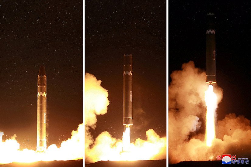 Las fotografías publicadas por Corea del Norte muestran los momentos iniciales del lanzamiento del misil. En las imágenes se aprecia cómo el líder norcoreano Kim Yong-un observa el lanzamiento del misil Hwansong-15 en la ciudad de Pyongsong y posteriormente celebra el exitoso lanzamiento.
