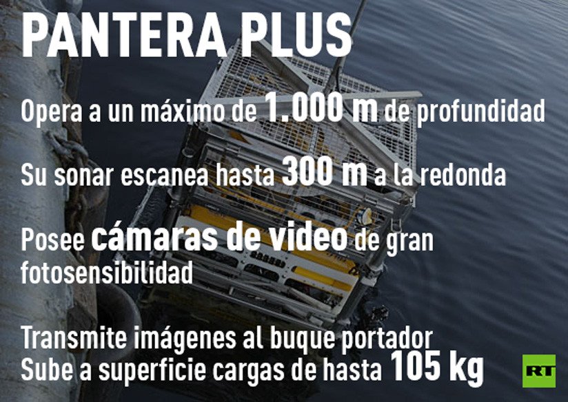 El sumergible ruso Pantera Plus se suma a la búsqueda del submarino argentino ARA San Juan, desaparecido hace 15 días. El robot teledirigido y la tripulación rusa encargada de su funcionamiento serán trasladados a la zona de rastreo desde el puerto de la ciudad Comodoro Rivadavia (Argentina) por el buque argentino ARA Islas Malvinas.