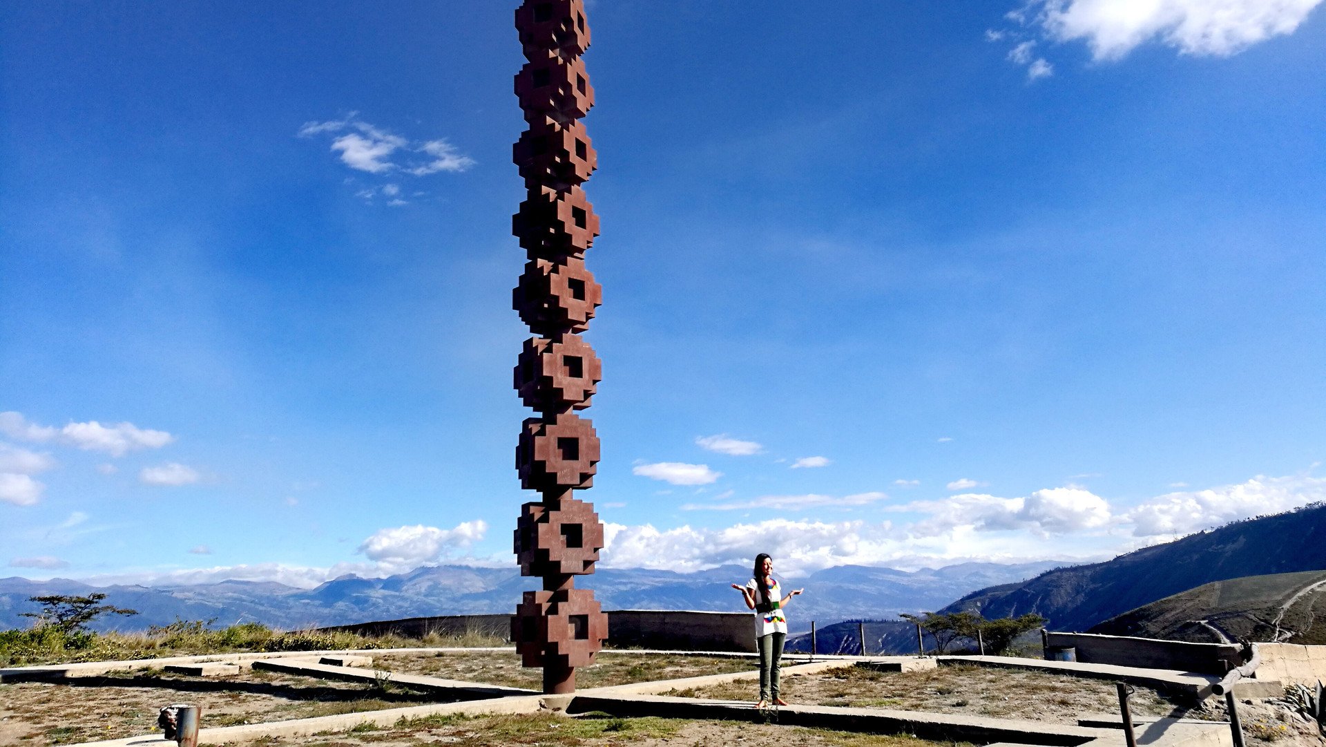 Lo primero que se observa al llegar al lugar es el Monumento Pilar del Sol. El guía explica que está compuesto por 12 cabezas —cada una representa a un mes del año— y en la parte alta está una estrella de ocho puntas. El artífice de esta obra es Gustavo Guayasamín, familiar de Oswaldo Guayasamín.