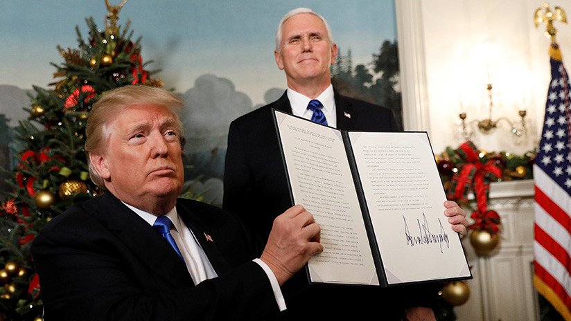 19:30 GMT: El presidente de Palestina, Mahmud Abbás, ha afirmado que el anuncio de su homólogo estadounidense, Donald Trump, respecto a que Estados Unidos reconoce Jerusalén como capital de Israel significa la retirada de Washington del proceso de paz en esa región. Según Abbás, la decisión de Trump ayudará a las organizaciones extremistas a librar guerras santas.