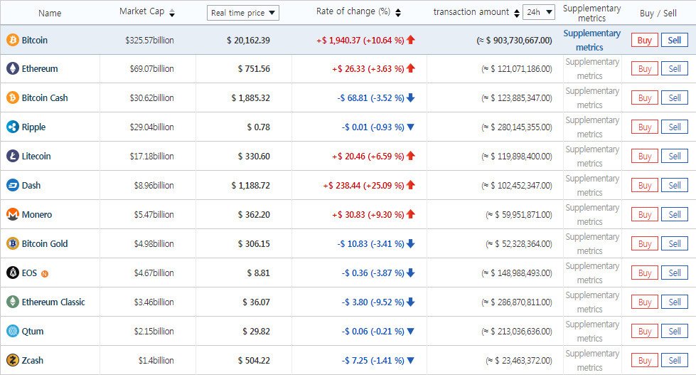 La principal moneda digital del mundo, el bitcóin, ha sobrepasado los 20.000 dólares en la principal casa de cambio de criptomonedas de Corea del Sur, Bithumb. A las 4:00 GMT de este domingo, la moneda digital se cotizó en esta plataforma a 20.162 dólares.