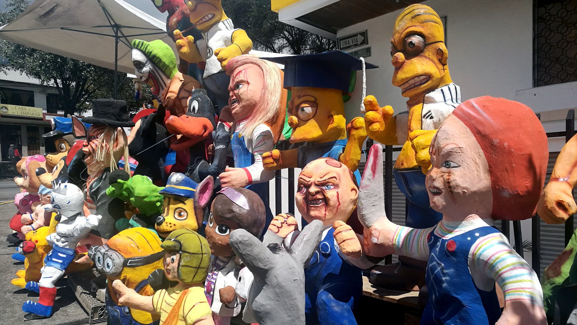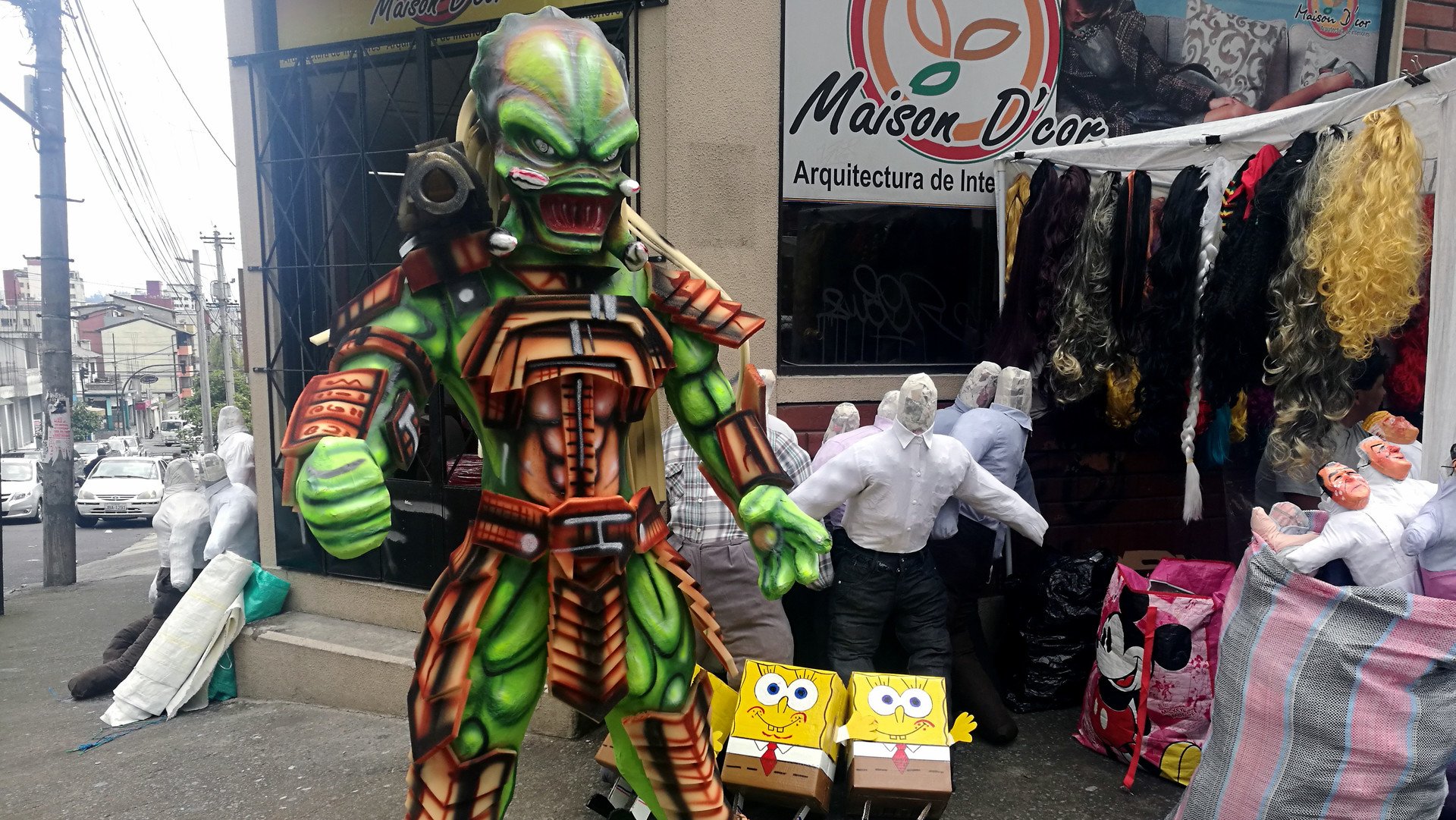 "El monigote original estaba hecho con ropa vieja y se le rellenaba con aserrín o papel periódico, para que se quemara más rápido; incluso lo hacíamos en la casa con lo que queríamos desechar ese año", cuenta Fanny González, una profesora jubilada que pregunta precios de los muñecos en la avenida América de Quito, la arteria vial donde más se venden en esta ciudad.