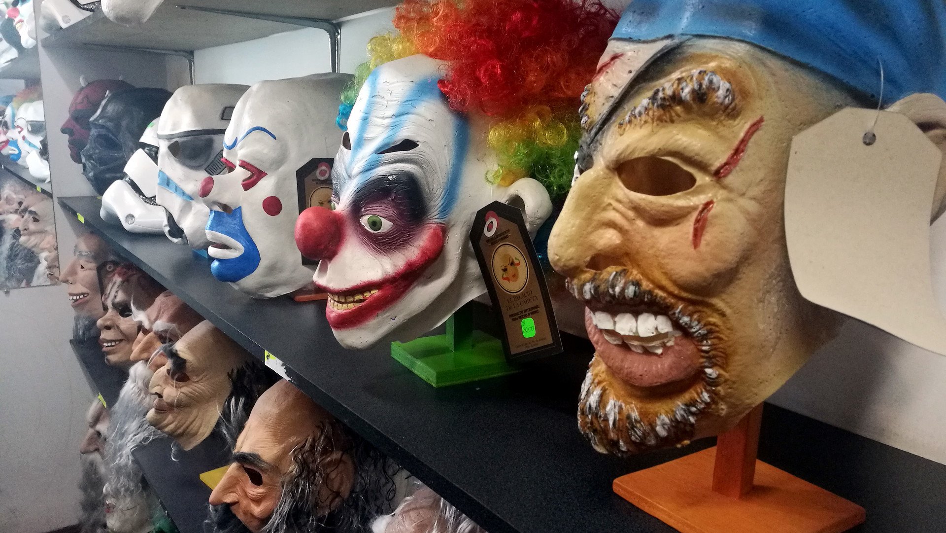 Por lo general, las caretas más solicitadas van en consonancia con las películas que se estrenaron en el año. Este 2017 las más buscadas son las de IT, el payaso asesino, y las de personajes de la Guerra de las Galaxias. Pero en la tienda también se encuentran las de de políticos, animales, etc. Si el comprador desea hacer la de algún familiar o la de su jefe, lleva la foto y se le confecciona.
