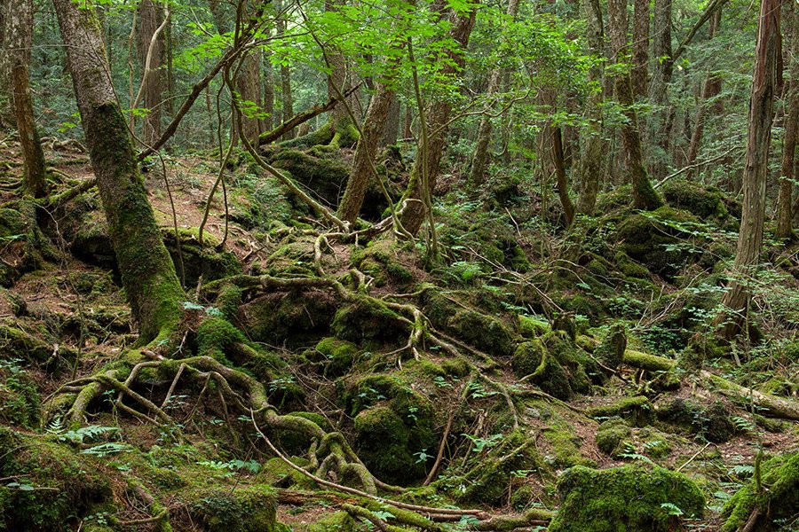 Esta foresta de unos 35 kilómetros cuadrados está situada a casi 130 kilómetros al oeste de Tokio, en la base del monte Fuji —considerado un sitio sagrado por los nipones—, y por su aspecto frondoso también es conocida como el Mar de Árboles.