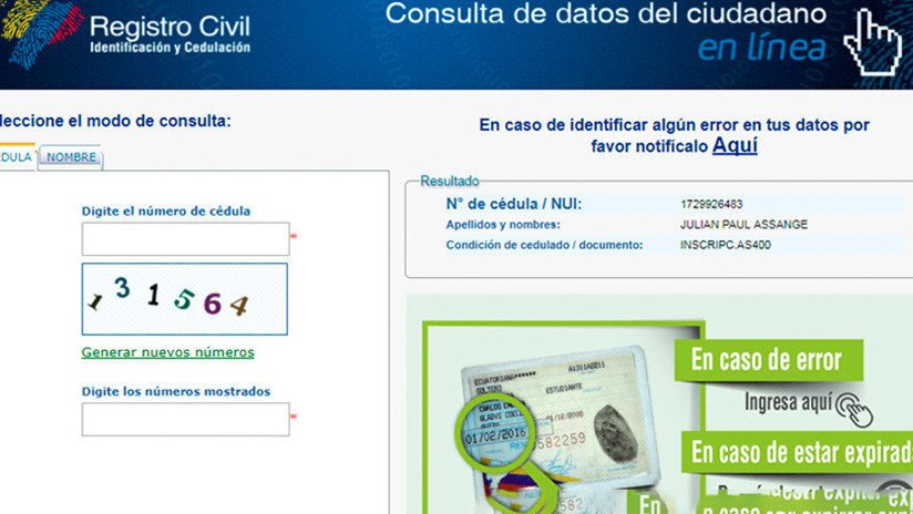 Este miércoles 10 de enero se dio a conocer que al activista y fundador de WikiLeaks, Julian Assange, le fue otorgada una cédula ecuatoriana, cuestión que ya ha sido confirmada por la Cancillería de Ecuador.