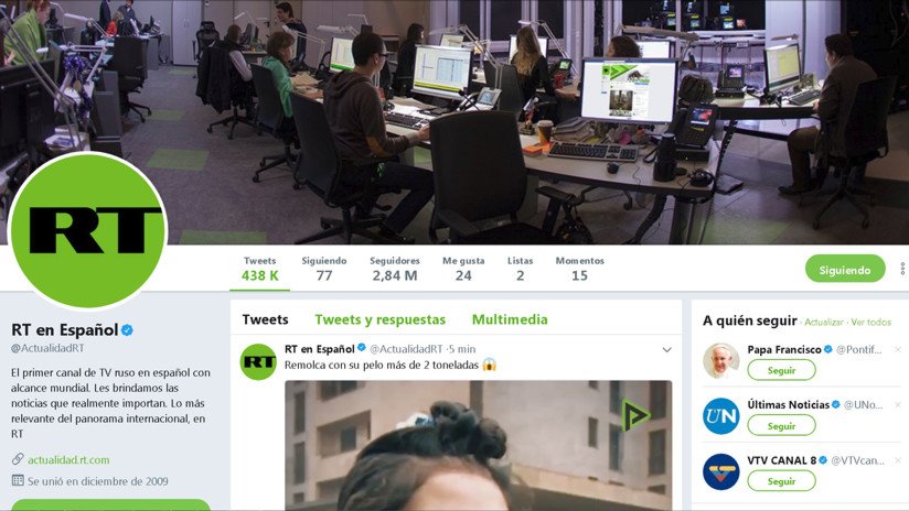 Para conocer las noticias más recientes de todo el mundo suscríbase a nuestro canal de Twitter@ActualidadRT, que le permitirá recibir notificaciones de las noticias urgentes y de impacto global justo en el momento de producirse.