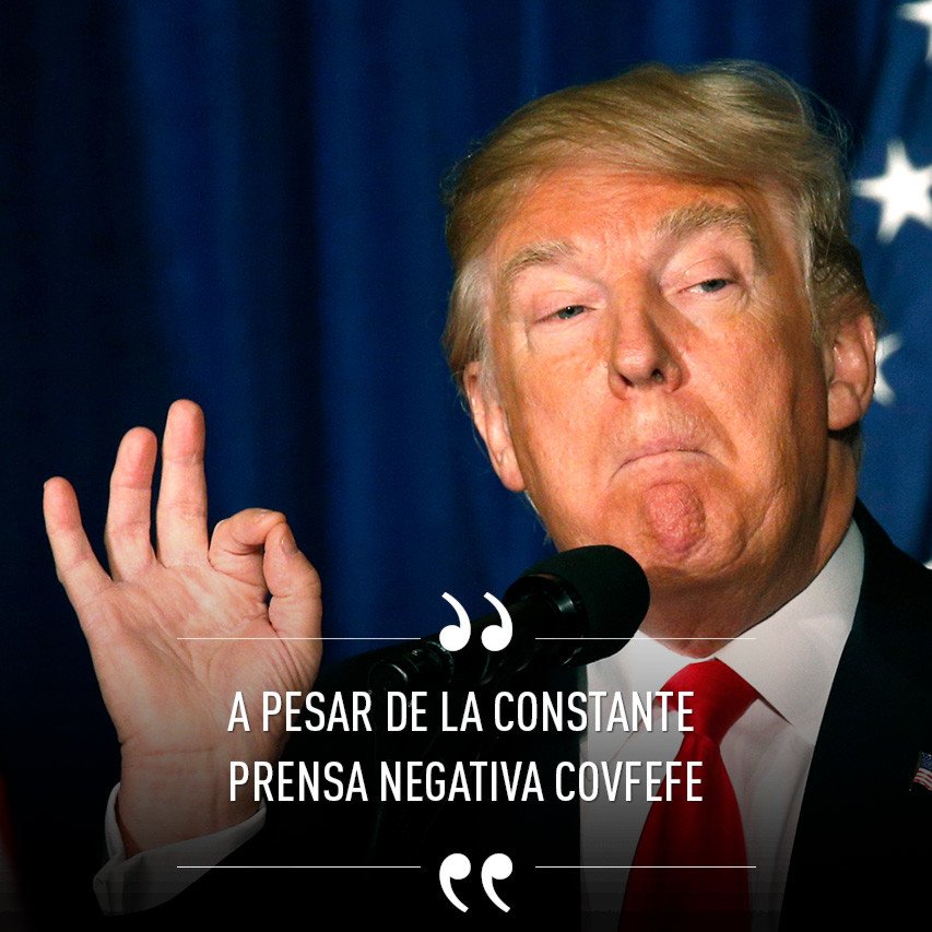 El 30 de mayo, Donald Trump publicó un misterioso tuit que rezaba literalmente: "A pesar de la constante prensa negativa covfefe". Antes de ser eliminado por el propio presidente, llegó a ser compartido más de 100.000 veces generando una oleada de memes y comentarios graciosos, mientras los usuarios trataban de averiguar su significado y pronunciación. Asimismo, se creó un 'hashtag' con el mismo vocablo en la red social.