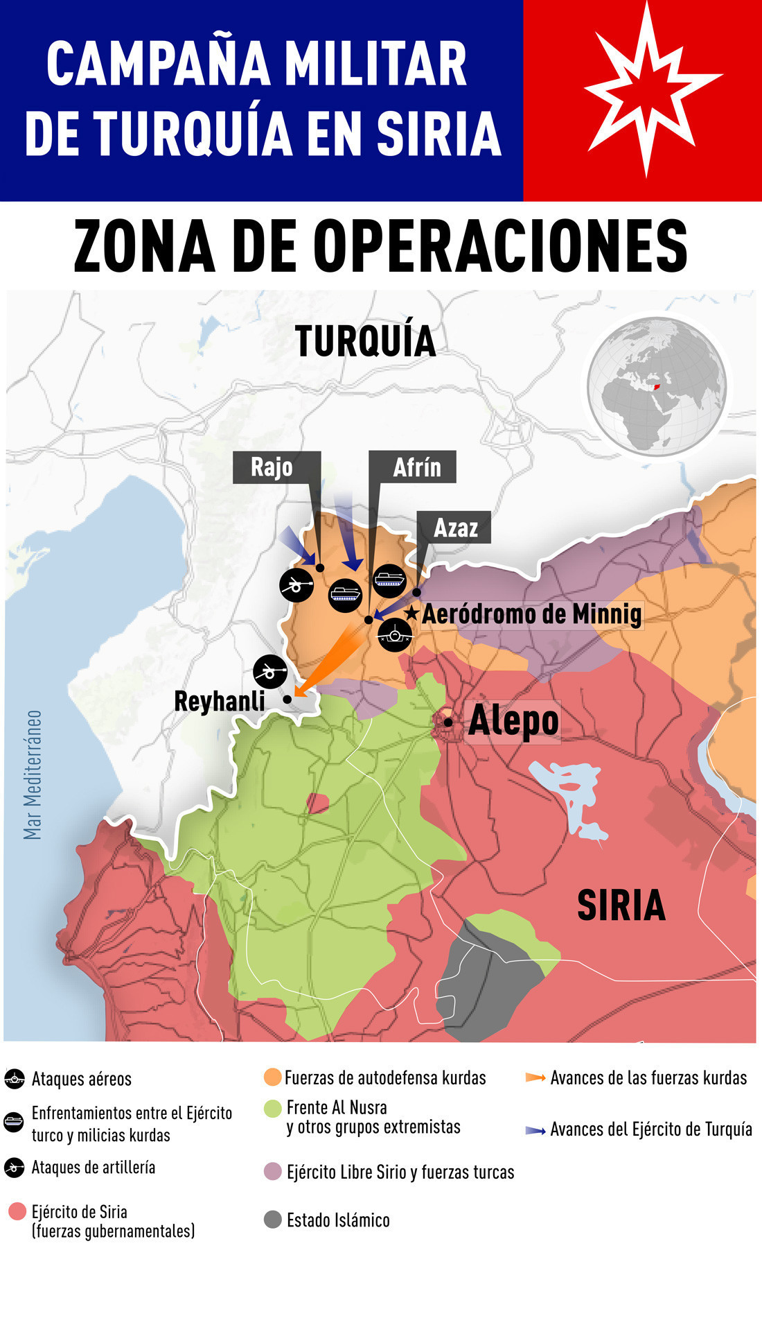 Las Fuerzas Armadas turcas y el Ejército Libre Sirio han tomado el control de dos pueblos cerca de la ciudad norteña siria de Afrín, donde continúa la operación militar contra las autodefensas kurdas, informa la agencia Anadolu.
