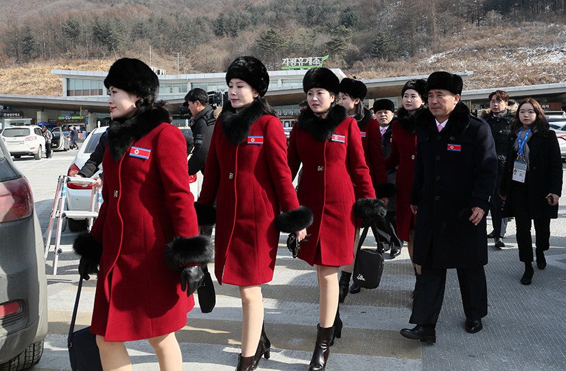 Las jóvenes formaban parte de una delegación de 280 miembros encabezada por el ministro de deportes norcoreano, Kim Il-guk, que incluía también a 26 miembros de un equipo de exhibición de Taekwondo, cuatro del Comité Olímpico de Corea del Norte y a 21 periodistas.