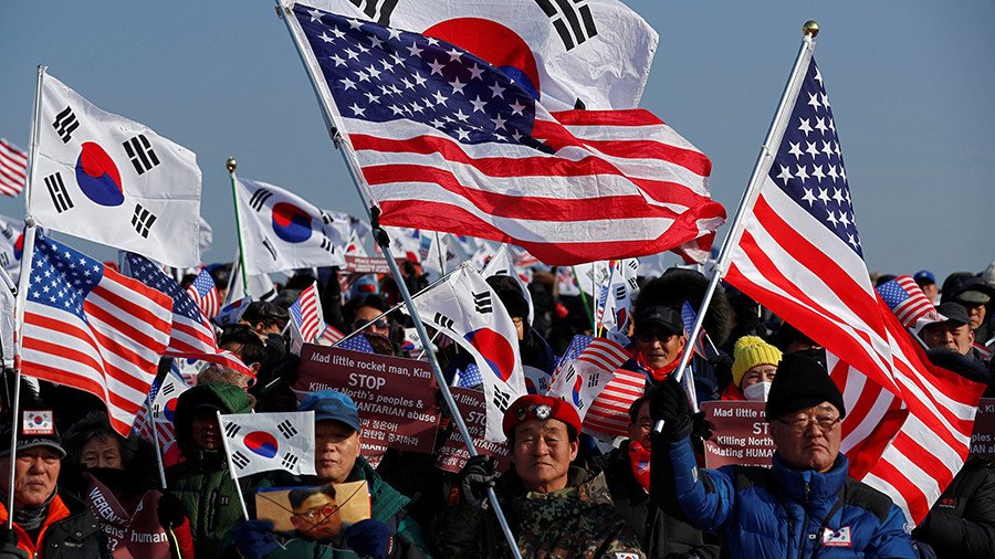 Algunos de esos activistas solicitaron al presidente de EE.UU., Donald Trump, el "bombardeo del Corea del Norte, por favor", y se refirieron a Kim como "Hombre Misil", el sobrenombre que le puso el inquilino de la Casa Blanca el año pasado.