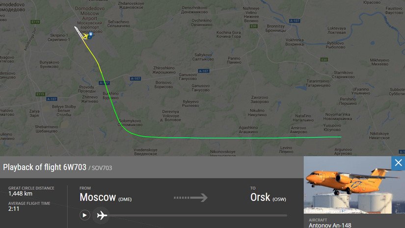 El vuelo 6W 703 despegó de Moscú y se dirigía a la ciudad de Orsk, en la región de Oremburgo.