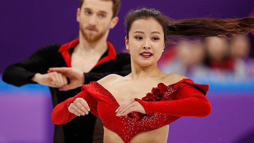 La patinadora artística surcoreana Yura Min casi pierde la parte superior de su ropa durante su actuación con el alemán Alexander Gamelin en los Juegos Olímpicos de Invierno Pyeongсhang 2018.