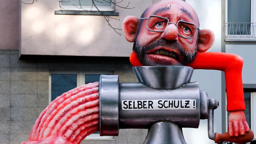 Otros políticos alemanes no se han salvado de la quema. Martin Shulz, líder del Partido Socialdemócrata alemán (SPD) aparecía en una carroza convirtiéndose a sí mismo en carne picada, como una cruda metáfora.