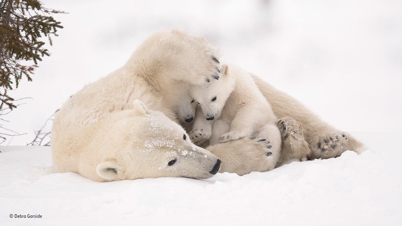 La fotógrafa Debra Garside captó cómo una hembra de oso polar protegía a sus cachorros durante una fría primavera en el parque nacional de Wapusk (Canadá).