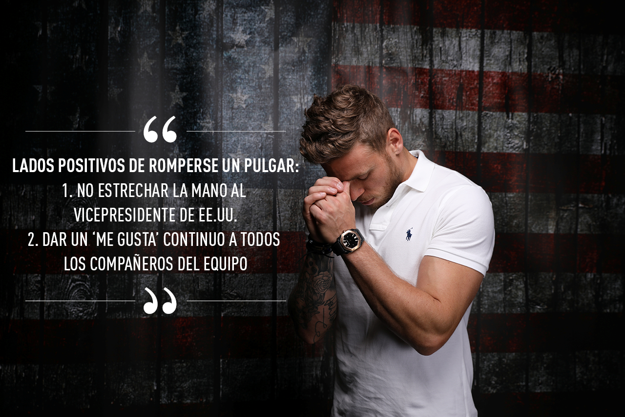 "Me rompí mi pulgar ayer durante el entrenamiento. Esto no me impedirá competir (obviamente), pero me impide estrechar la mano de Pence así que... ¡Hay lados positivos! Daré a mis compañeros de equipo (y literalmente a todos) un entusiasmado 'me gusta' continuo para animarles el resto del viaje", tuiteó Kenworthy.