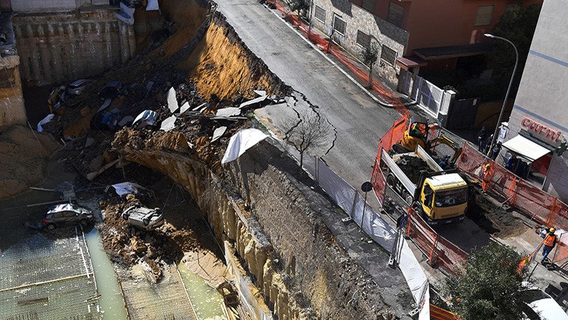 Más de 20 familias fueron evacuadas después de que se abriera un enorme socavón en un distrito del noroeste de Roma (Italia) y 'se tragara' varios coches aparcados en la calle, informan medios locales.