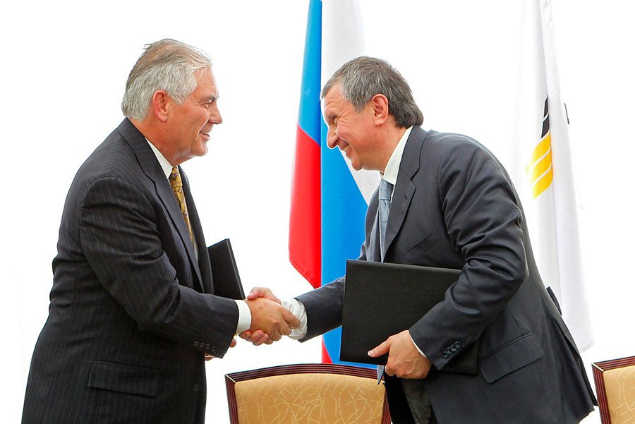 En el 2012, el entonces presidente ejecutivo de Exxon, Rex Tillerson, alcanzó un acuerdo con Rosneft para explorar los yacimientos del mar Negro, el Ártico y el Extremo Oriente ruso. Los contratos, por valor de 500.000 millones de dólares en inversiones conjuntas, fueron suspendidos tras la reunificación de Crimea con Rusia en el 2014 y el comienzo del conflicto en el este de Ucrania.