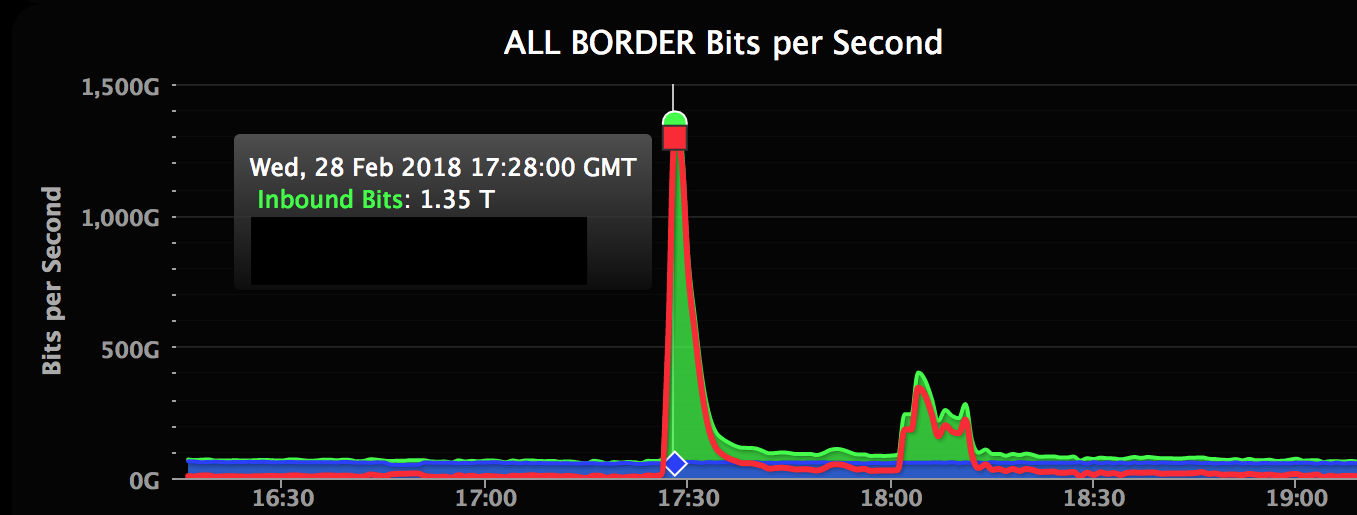 La potencia del ataque, que consiste en sobrecargar los objetivos con un exceso de tráfico web y datos inservibles, fue evaluada en 1,35 terabits por segundo, suspendiendo los servidores por unos 10 minutos.