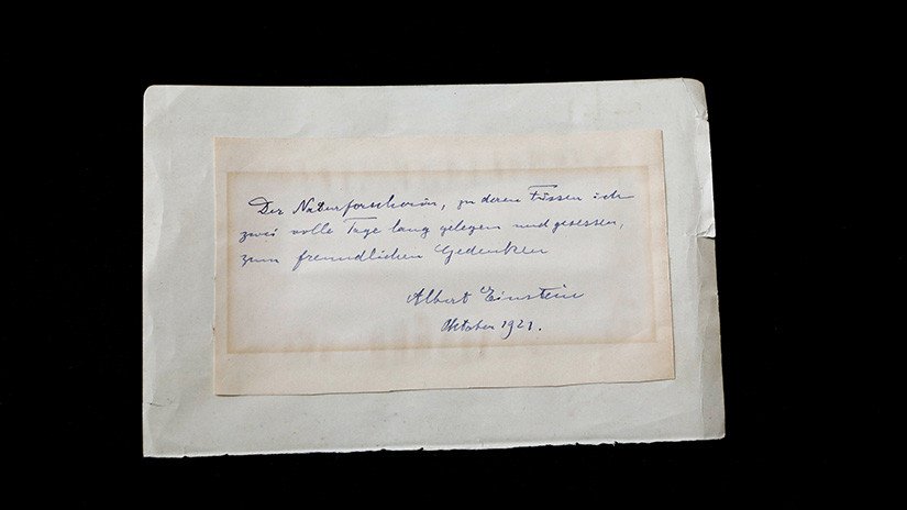 La primera carta, escrita en alemán y fechada en octubre de 1921, reza: "Para la científica investigadora a cuyos pies me senté y dormí por dos días enteros, como un recuerdo amistoso". La misiva fue vendida en 6.100 dólares en la casa de subastas Winner's Auctions & Exhibitions.