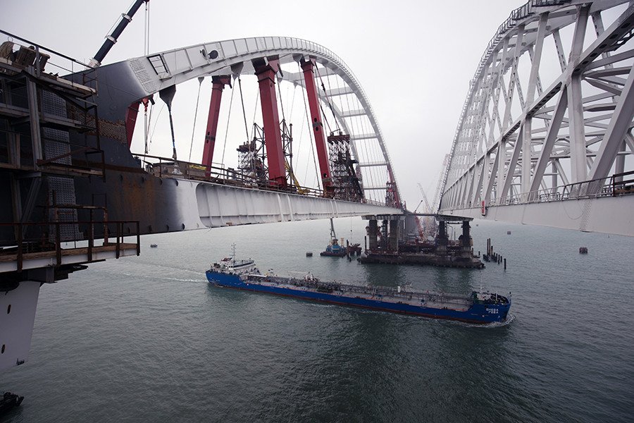 El puente, que conectará Crimea con el resto de Rusia sobre el estrecho de Kerch, se empezó a levantar en febrero de 2016. La infraestructura tendrá capacidad para soportar el tráfico de 40.000 coches al día y 14 millones de pasajeros al año.