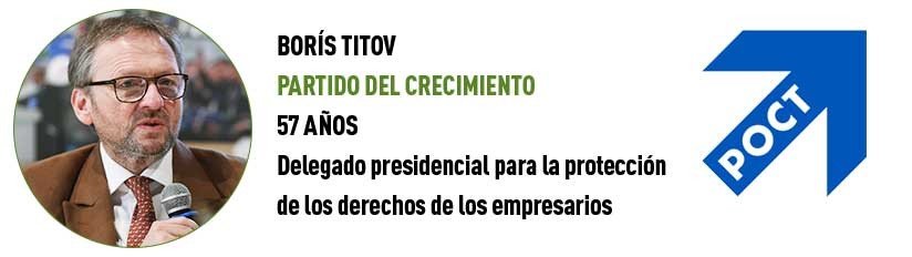 El candidato del Partido del Crecimiento, Borís Titov, es un hombre de negocios y ejerce de delegado presidencial para la protección de los derechos de los empresarios desde 2012.