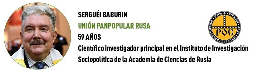 El aspirante del partido Unión Panpopular Rusa, Serguéi Baburin, es el сientífico jefe del Instituto de Investigación Sociopolítica de la Academia de Ciencias de Rusia.