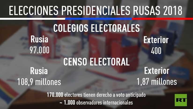 Rusia ha entrado en la recta final antes de sus próximas presidenciales, que celebrará este 18 de marzo en alrededor de 97.000 colegios electorales. Además, para facilitar la participación de los ciudadanos rusos en el extranjero se han creado 400 centros electorales en 145 países del mundo.