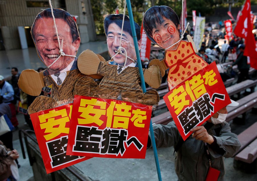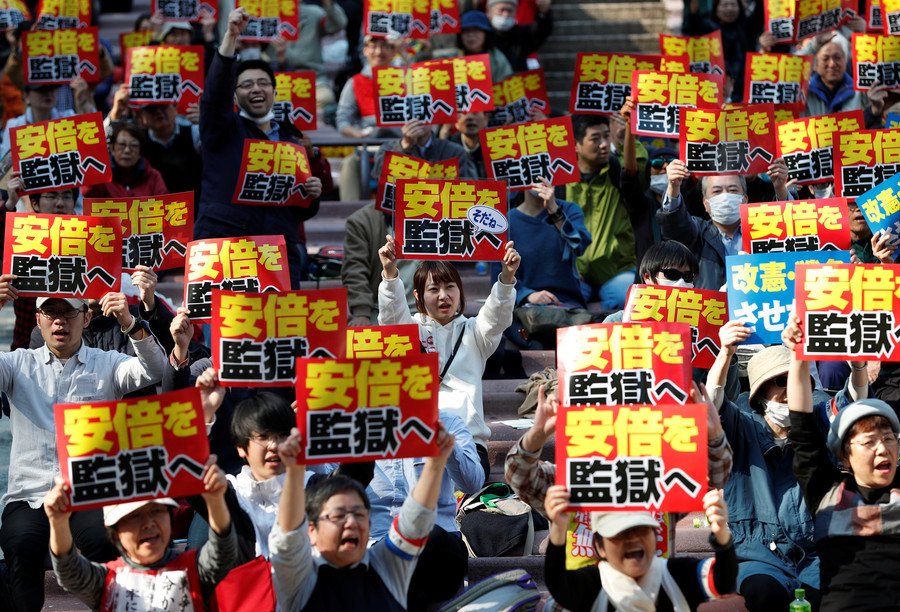 La manifestación se produce en medio de denuncias de que Abe estuvo involucrado en la venta de tierras estatales con un gran descuento para una empresa que tiene vínculos con su esposa. La acusación y los intentos de encubrimiento han desencadenado un escándalo de nepotismo.
