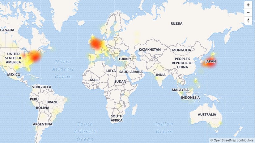 La caída ha afectado en mayor medida a usuarios de Estados Unidos, Japón, el Reino Unido y Filipinas, así como de varios países europeos, de acuerdo con los datos del sitio web Down Detector. Los usuarios rusos también han reportado el fallo.