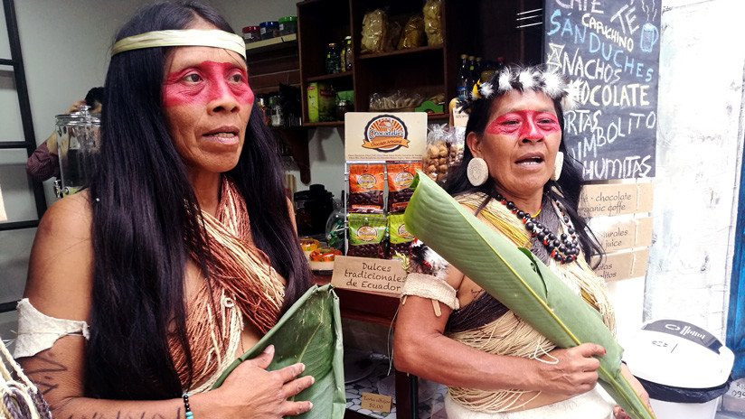 Omari Ima vino junto a dos compañeras waorani para verificar el lugar donde serían vendidas sus artesanías y chocolate, y comprobar, personalmente, que su historia fuera contada a las personas que quisieran adquirir algunos de sus productos.
