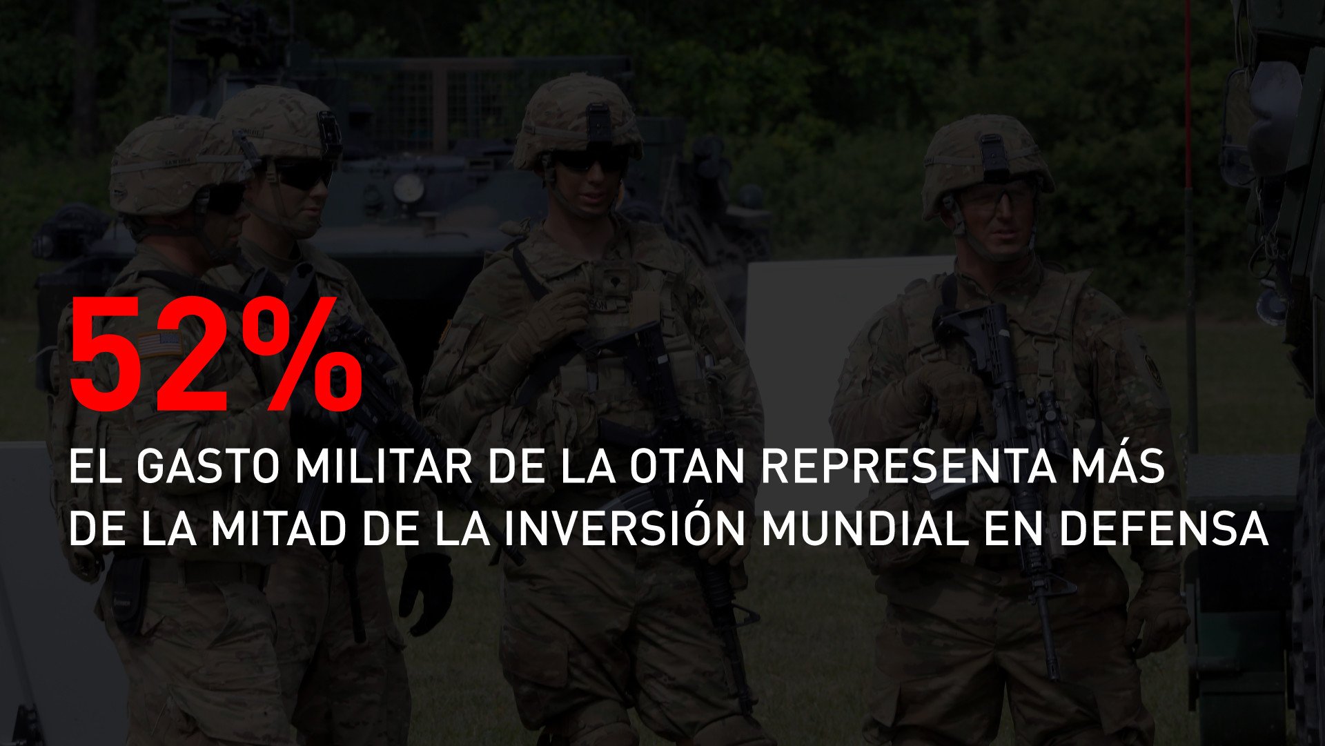Además, se reporta que el gasto militar del conjunto de los miembros de la OTAN ascendió a 900.000 millones de dólares en 2017, lo que representa un 52 % del total mundial.