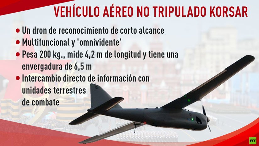El vehículo aéreo no tripulado Korsar ha sido concebido para realizar labores de reconocimiento del terreno, vuelos de patrullaje y de observación, fotografía aérea y otras tareas tácticas en el campo de batalla. Su peso es de aproximadamente 200 kilos, tiene una envergadura de 6,5 metros y puede volar hasta 12 horas a velocidades de hasta 120 km/h, características que le permiten responder a las necesidades del Ejército, la Armada y las Fuerzas Especiales.