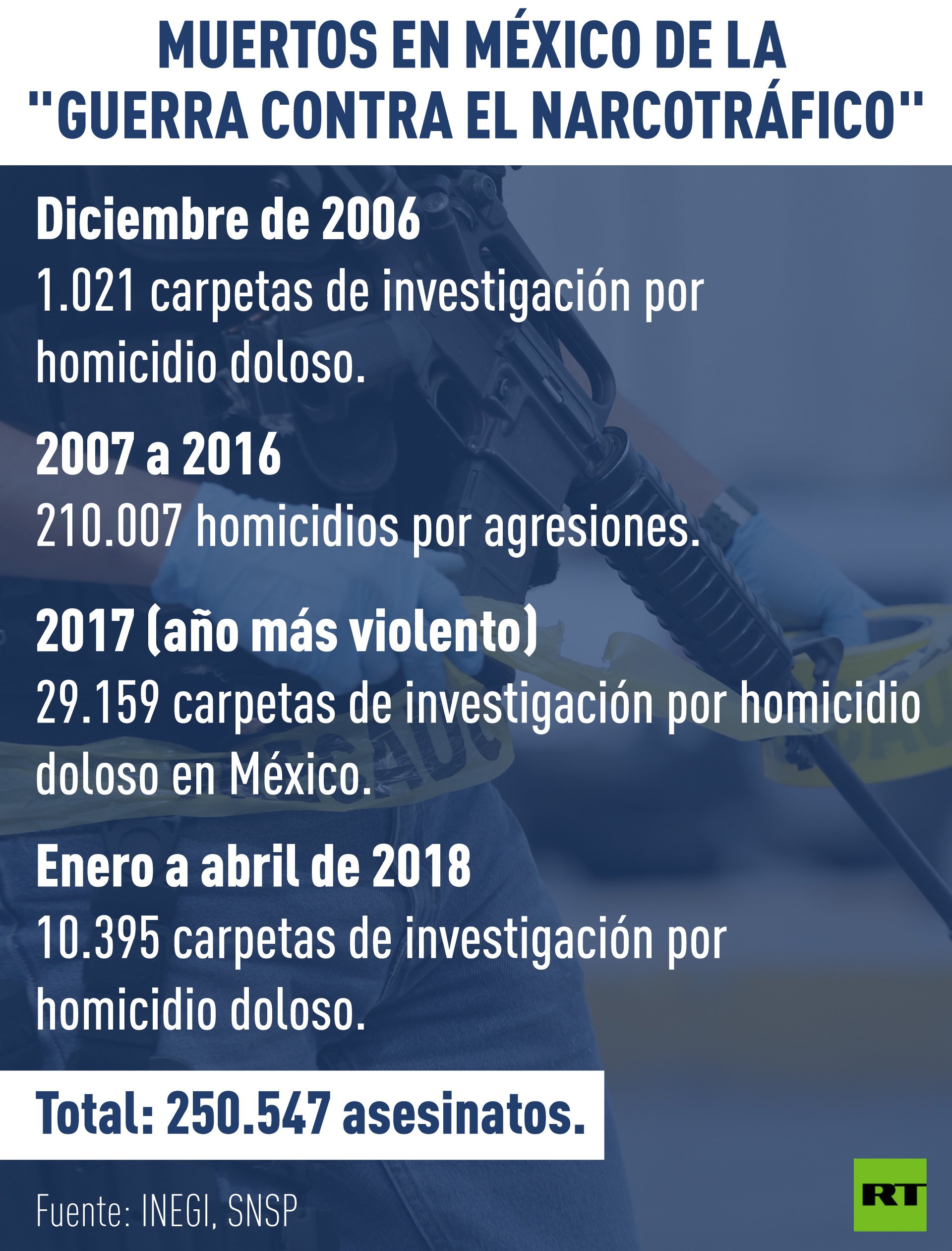 Más de 250.000 personas han sido asesinadas en México en lo que va de la llamada "guerra contra el narcotráfico", según un recuento realizado por RT.