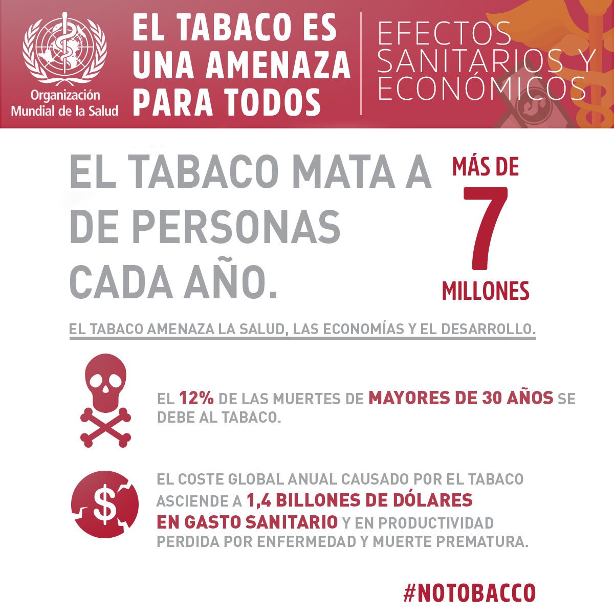 La epidemia mundial del tabaco provoca 7 millones de muertes anuales. Por eso y como cada año, la Organización Mundial de la Salud (OMS), lanza una campaña con motivo del Día Mundial Sin Tabaco que se celebra desde 1987 en todo el mundo el día 31 de mayo.