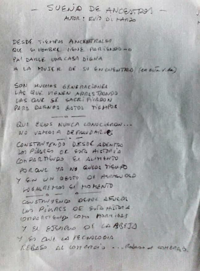 El vocalista de MasMegahertz hace referencia a que 'Sueño de ancestros' es quizás la última canción escrita y grabada por Di Marzo y que en este momento se encuentra en proceso de post producción. "Tenemos sus últimas fotos, sus últimas declaraciones, sus últimas canciones", confiesa Meire.