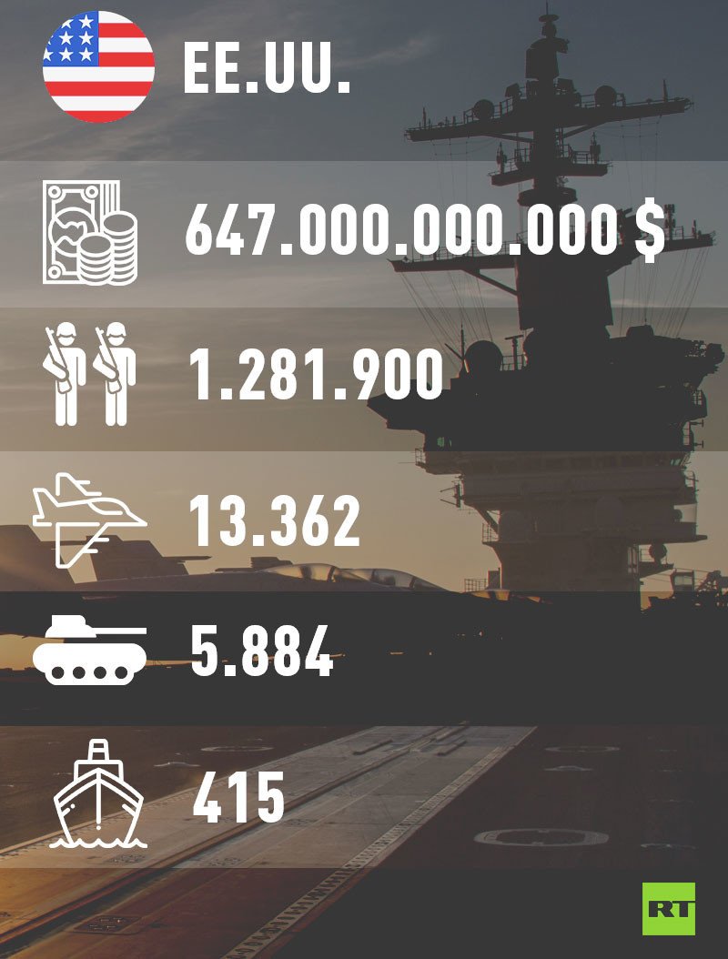 - Presupuesto de Defensa: 647.000.000.000 de dólares