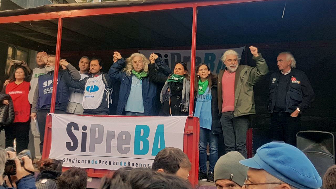 "Ahora, los principales conflictos son en los medios públicos", explicó Agustín Lecchi, secretario de Organización del Sipreba y delegado de la Televisión Pública, quien detalló que los problemas arrancaron con cesantías "en las señales digitales" administradas por el Estado y continuaron en la Radio Nacional y la TV Pública: de hecho, recientemente "se avanzó de manera muy clara en la Agencia Télam con dos despidos absolutamente persecutorios".