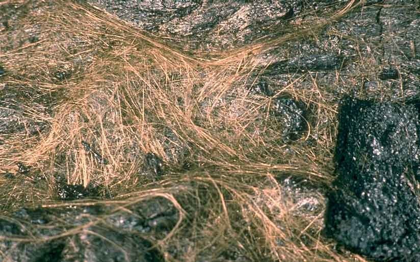 Estos 'pelos' son unos hilos dorados y afilados, producto de la erupción en curso del volcán Kilauea, que están cubriendo parte de la isla. Consisten en unas finas fibras de vidrio que se forman cuando en la superficie de la lava explotan burbujas de gas, explicó Don Swanson, geólogo del Observatorio de Volcanes de Hawái, al portal Live Science.