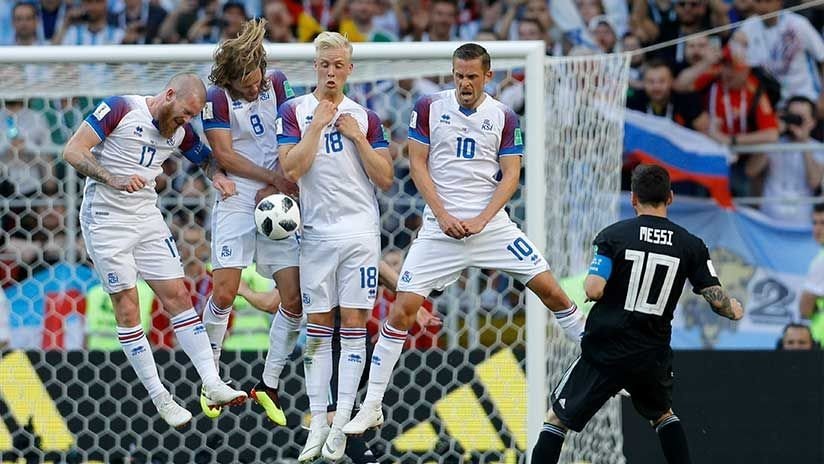 Totalmente volcados sobre el área islandesa, la muralla defensiva rival no deja a los argentinos crear ocasiones de gol.