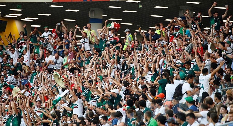Varias veces se entonó el 'Cielito lindo' en el Rostov Arena, con una hinchada mexicana entregada.