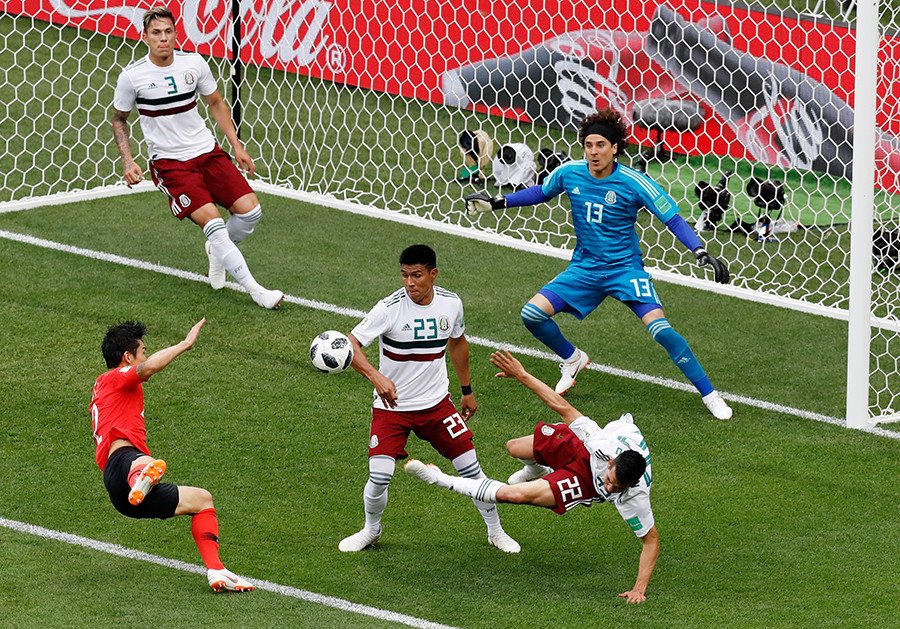 Corea del Sur dio el primer susto en el minuto 12, aunque 'Chucky' Lozano se interpuso para evitarlo, jugándose el tipo. Lo volvieron a intentar en el minuto 21, pero la capacidad de sacrificio de los jugadores de México impidieron a Son marcar.