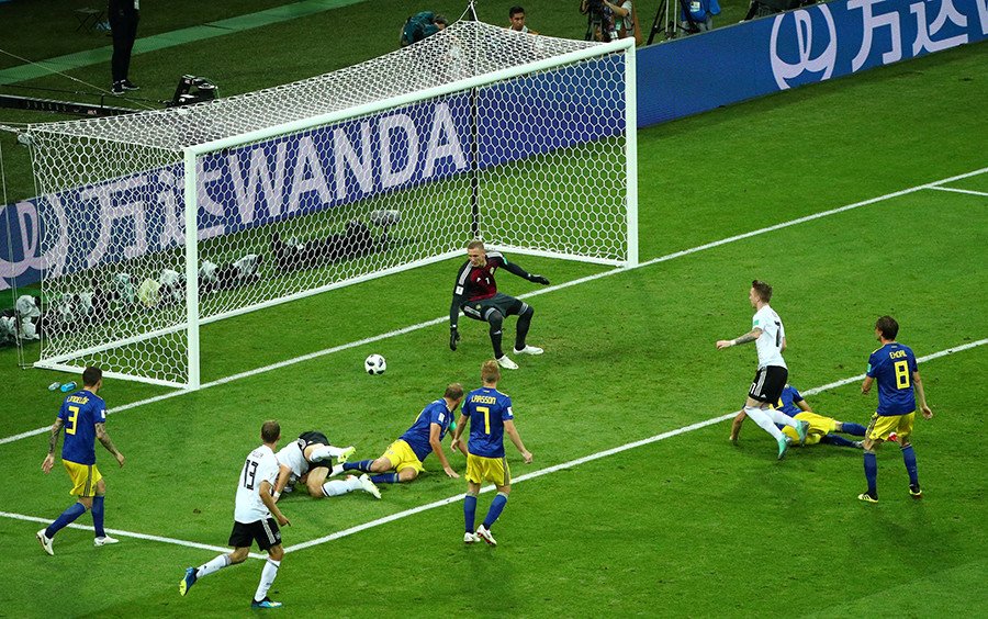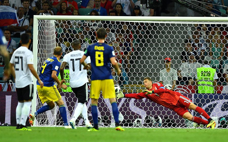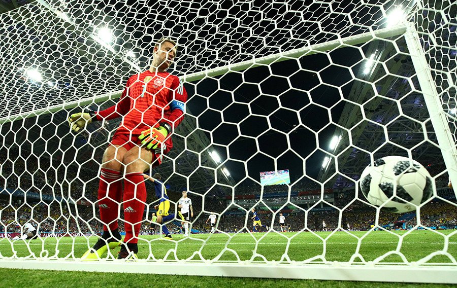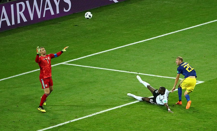 Al final del primer tiempo, las dudas sobre Alemania se acrecentaron con una clara oportunidad de gol para Suecia, que no fue concretada gracias a una gran parada de Manuel Neuer.